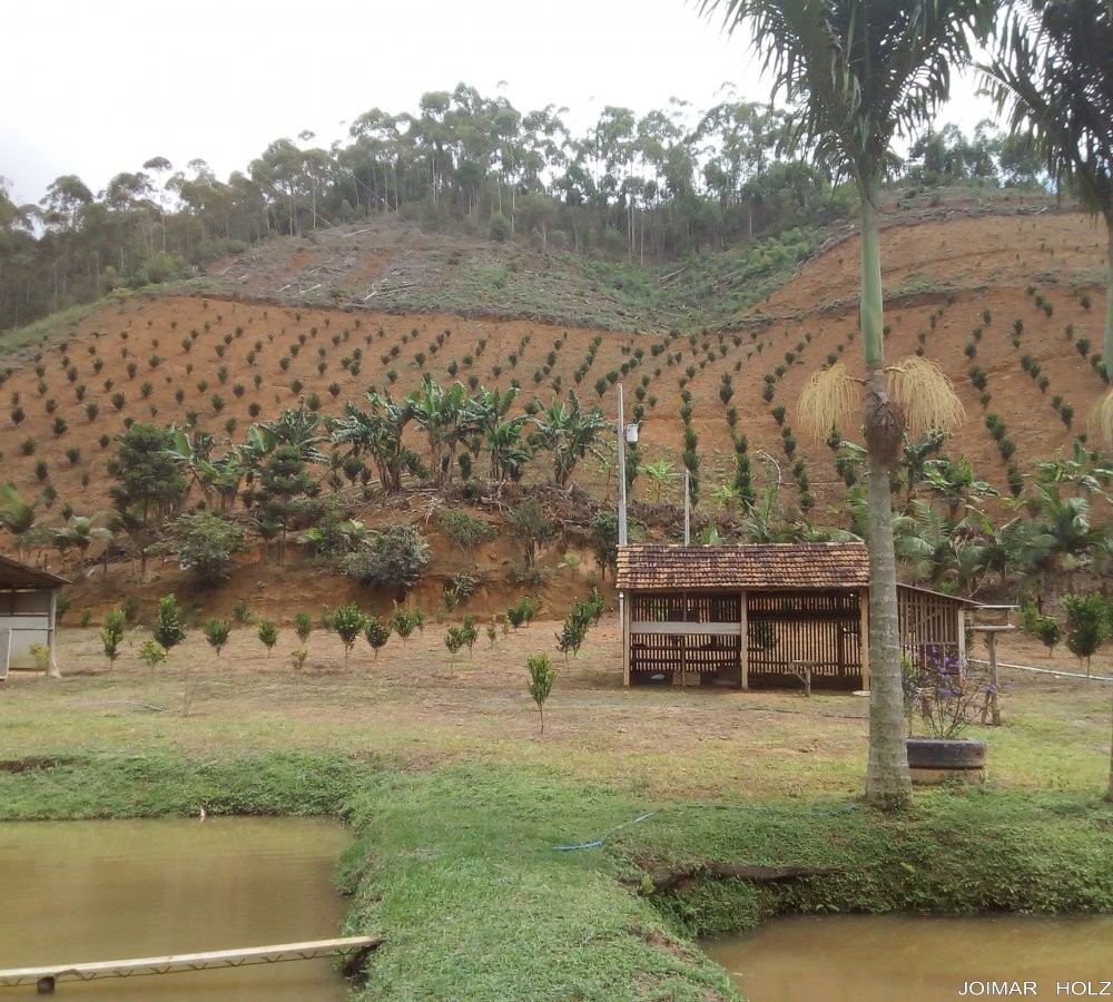TERRENO COM 9,8 HA, ESCRITURADO, 20% DE RESERVA LEGAL, AGUA, ENERGIA, FRUTIFERAS, EUCALIPTO, ACUDES, LOCALIZADO A 2 KM DO ASFALTO, E 12 KM DO CENTRO DE SANTA MARIA DE JETIBA.